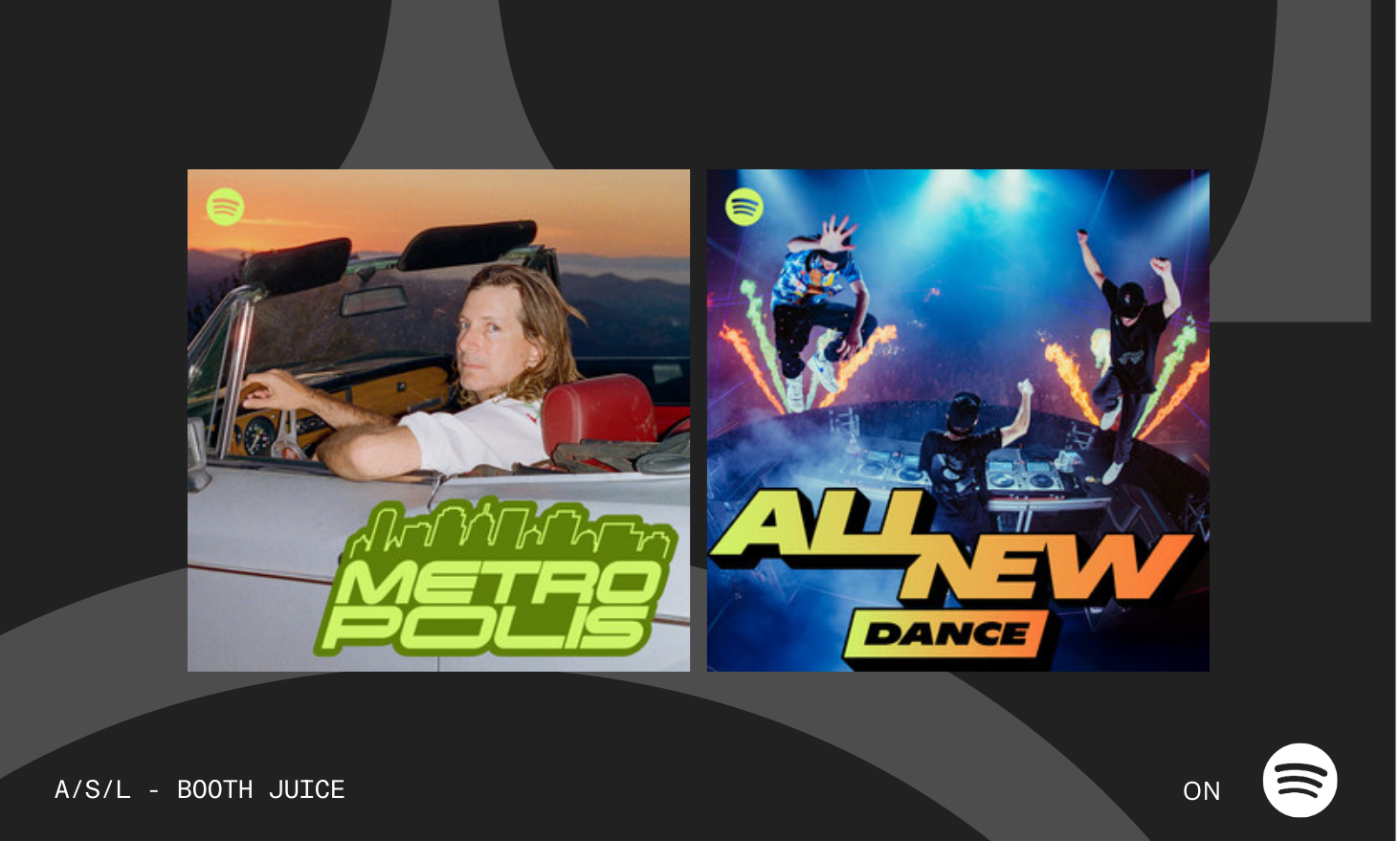 SPOTIFY includes A/S/L'S "BOOTH JUICE" on their METROPOLIS & ALL NEW DANCE PLAYLISTS