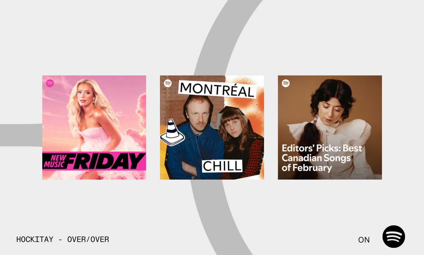 SPOTIFY includes HOCKITAY'S "OVER/OVER" ON TEN EDITORIAL PLAYLISTS INCLUDING NEW MUSIC FRIDAY, FRESH FINDS & MONTREAL CHILL.